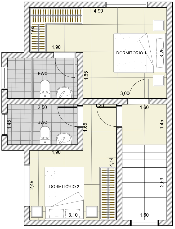 Projeto modelo com 2 dormitório(s), com opções personalizáveis para até 4 dormitórios.
