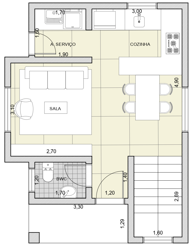 Projeto modelo com 1 dormitório(s), com opções personalizáveis de 1 até 4 dormitórios.