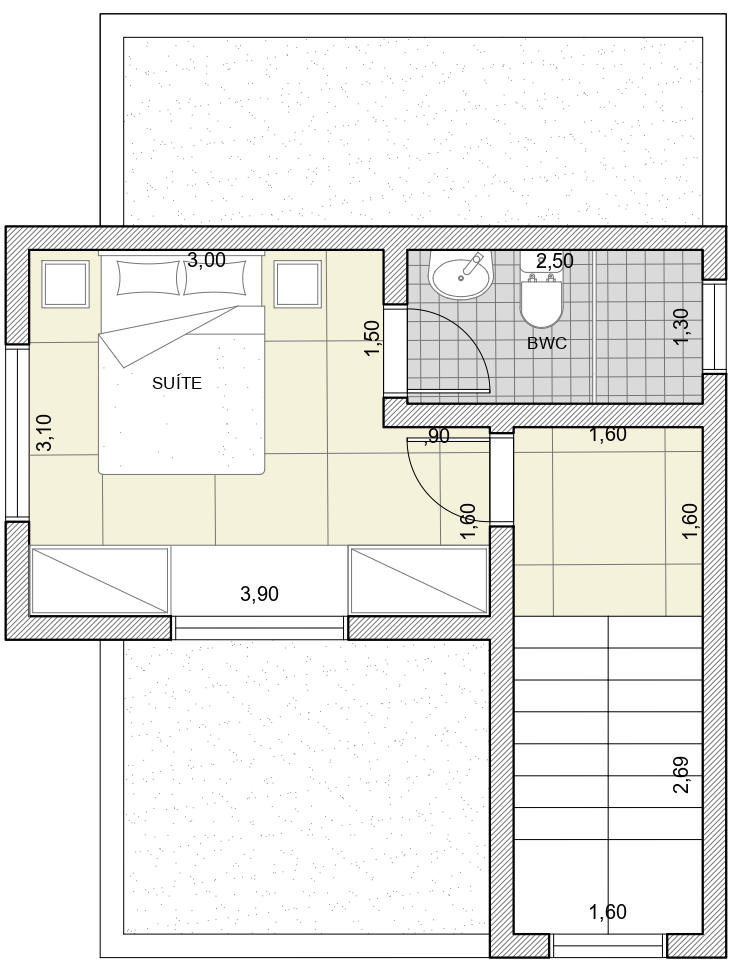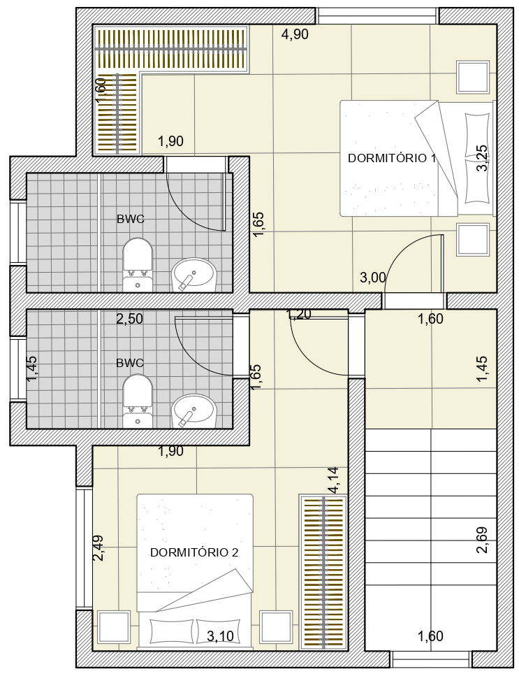 Projeto modelo com 2 dormitório(s), com opções personalizáveis para até 2 dormitórios.